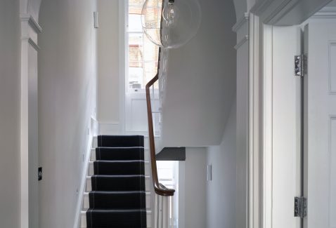 Refurbishment of a Georgian Grade II Listed terraced house dating back to the 1780’s situated in a conservation area, in Marylebone with a floor area of circa 320sqm. The project comprises five storeys arranged as a single family dwelling. The scheme includes a new rear  courtyard extension and was designed to include a media rooms and wine stores, large contemporary kitchen, extensive built in joinery and restoration of original features.